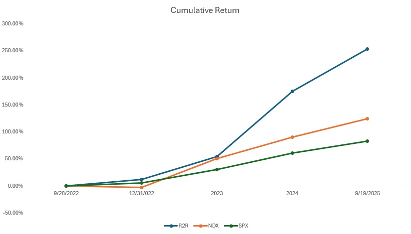Period | R2R Return | Nasdaq 100 | S&P 500 | Net Value | Duration/Year |