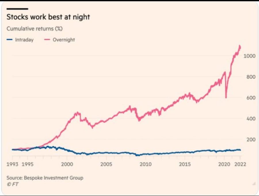 The bulk of compounding comes from holding through time, capturing the “overnight” and long-horizon return stream.